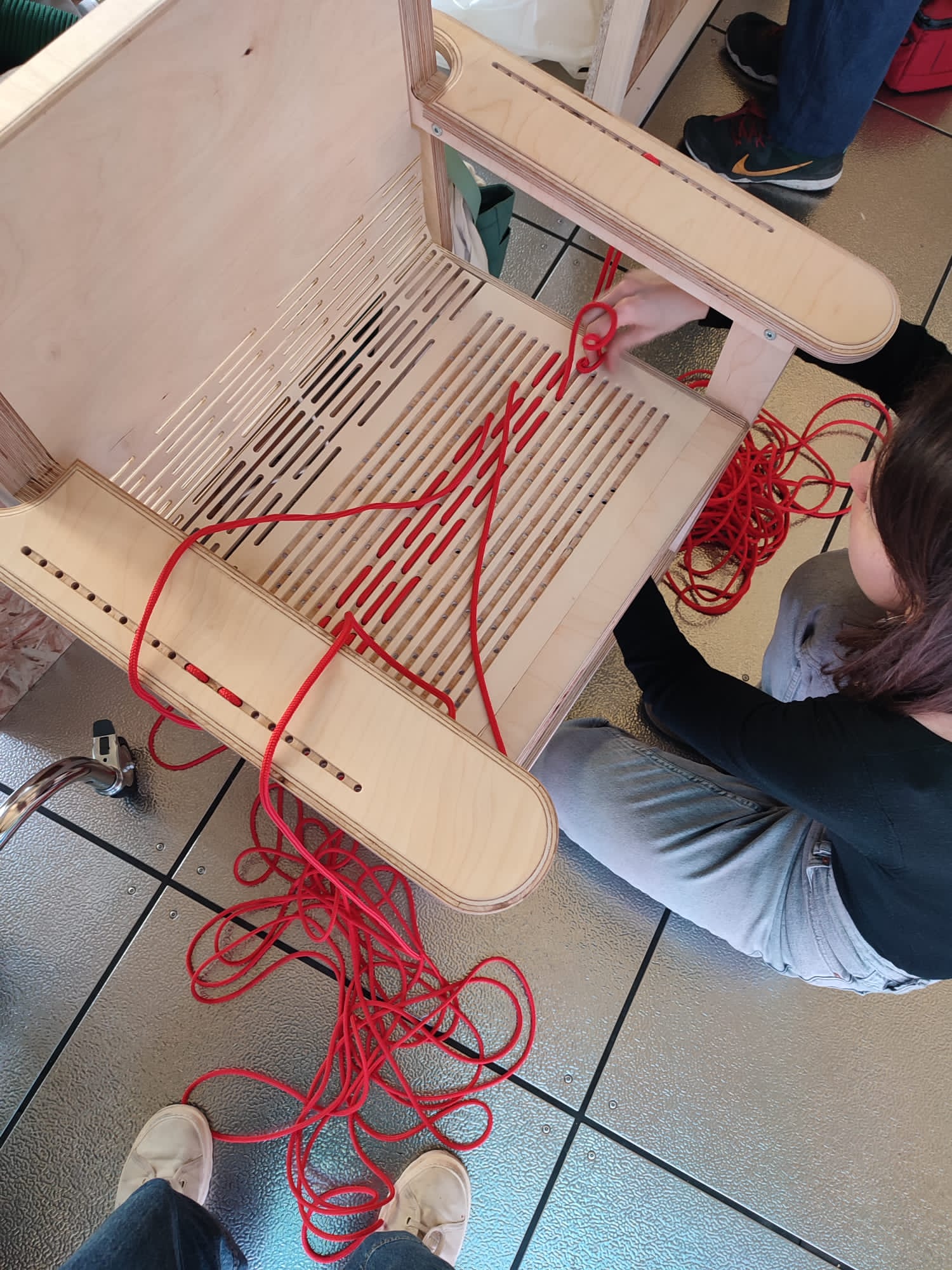 After participating in iAtelier Kelly Begiazi and me partnered with Materea Industries and were awarded with the WORTH II Partnership Project in June 2022 to develop a new product within the philosophy of the New European Bauhaus "beautiful sustainable together". The result (a chair that uses CNC cut and kerfing and can be woven by the user with cords of the color of their choice) was exhibited in the Milan Design Week during April 2023.