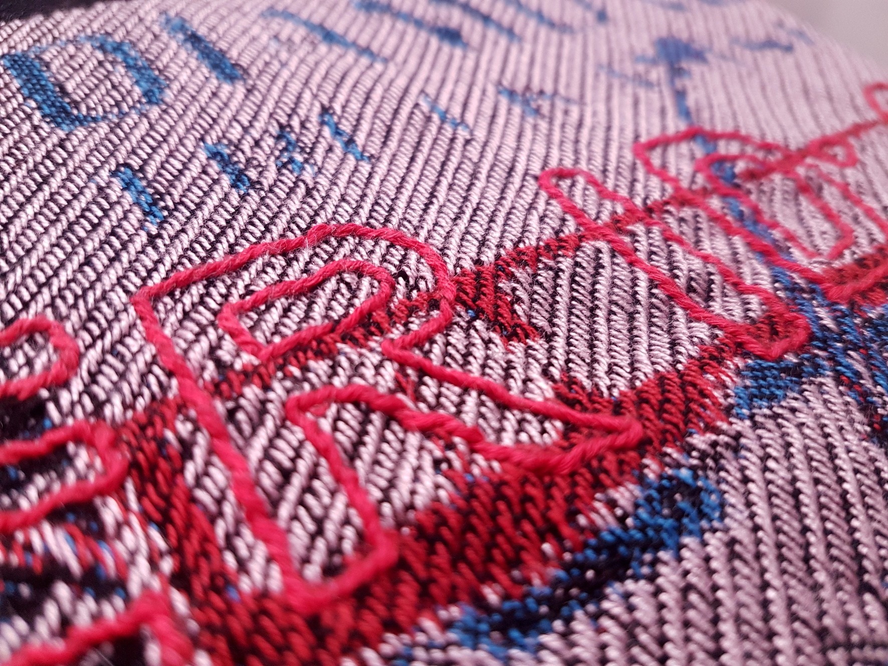 The embroidered text follows the same color palette, not only for aesthetic reasons but also to represent the process of adaptation to which a person foreign to a foreign culture is subjected. How to blend in, go unnoticed, adapt... without losing one's own essence?
